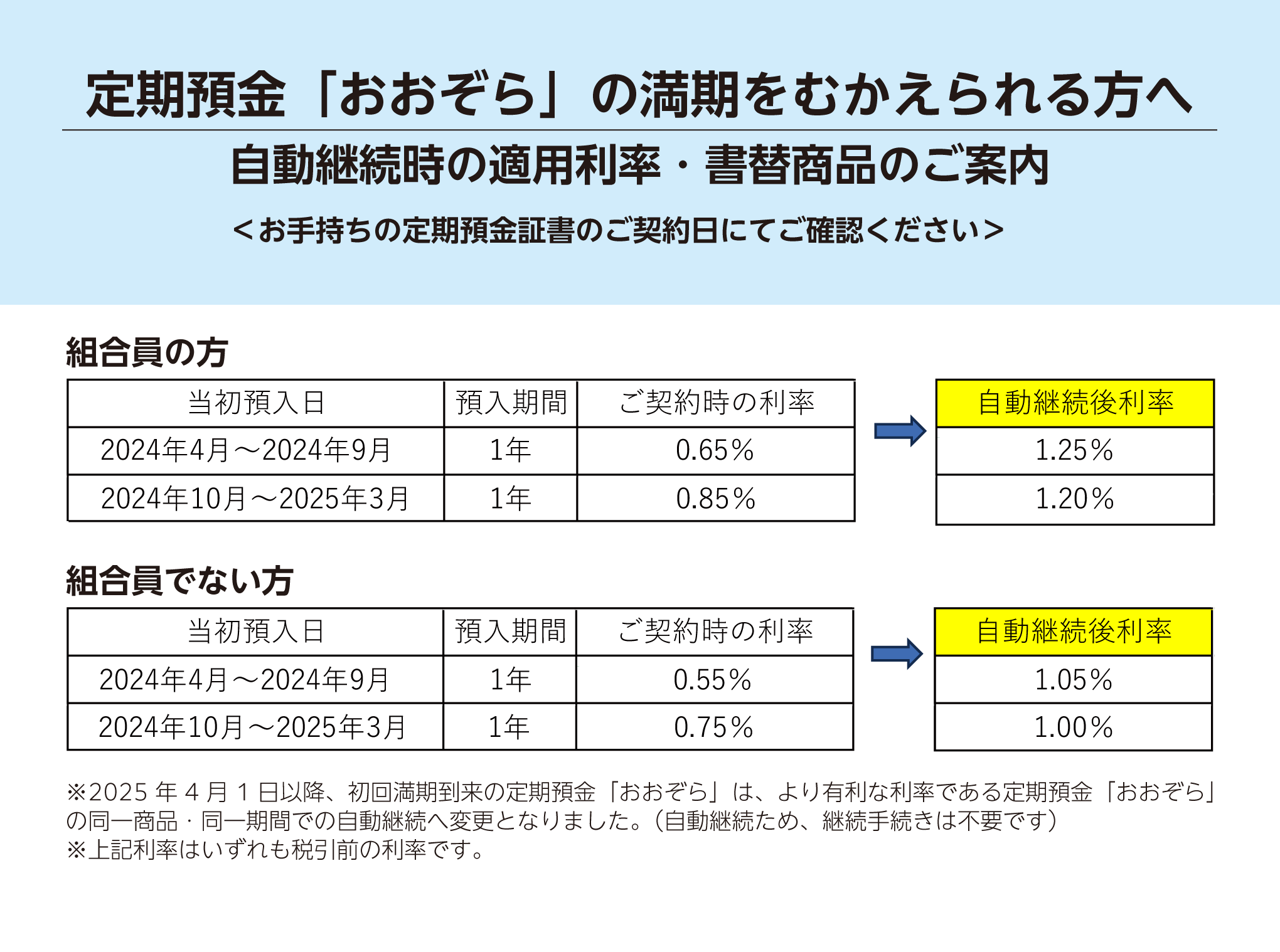 - 定期預金「おおぞら」(2025年10月以降)の取扱いについて